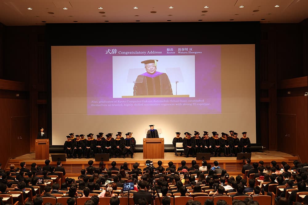 学校法人情報大学 京都情報大学院大学(KCGI),京都コンピュータ学院(KCG)および京都日本語研修センター(KJLTC),京都自動車専門学校(KCGM)の2025年度学位授与式・卒業式が2026年3月19日(木),KCG京都駅前校・KCGI京都駅前サテライト6階大ホールで挙行されました。AIの開発・使用が急ピッチで進み社会のデジタル化がさらに加速し,IT分野における優秀な技術者,デジタルスキルを備えた自動車整備士を求める声が一段と高まる中,豊富な知識と高い技術力を身につけた修了生・卒業生が,自信と希望に目を輝かせ学び舎を巣立ちました。みなさん,誠におめでとうございます。今後のご活躍を心からお祈りします。